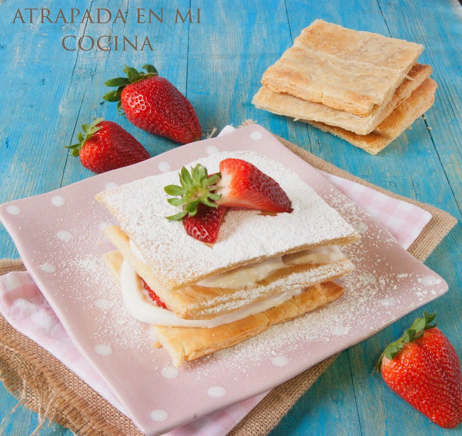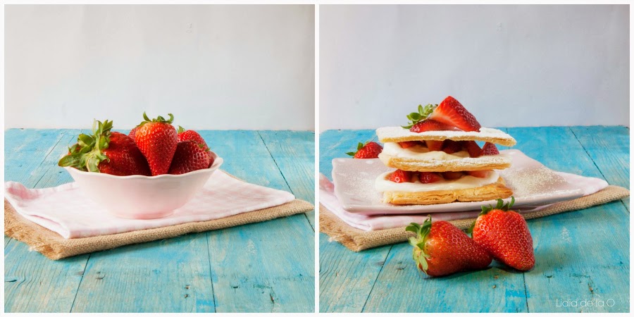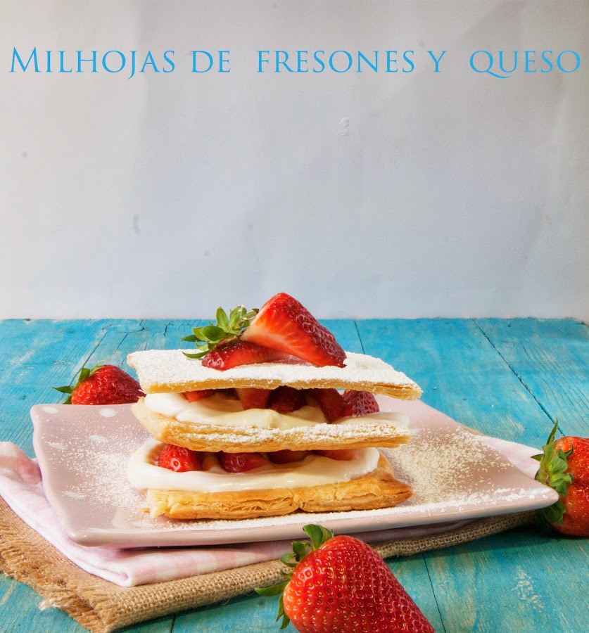Para acabar la semana no nos vamos a complicar mucho. Vamos a aprovechar el tiempo de fresas y fresones para preparar un postre muy sencillo, rápido y rico. Un postre que se puede improvisar sobre la marcha y que hará las delicias de nuestras familias e invitados. Incluso si no os gusta la mezcla de queso y nata (crema de leche) podéis sustituirla por una capa de chocolate, ¿qué os parece!, ¿a que también combinan el hojaldre, el chocolate y las fresas?.