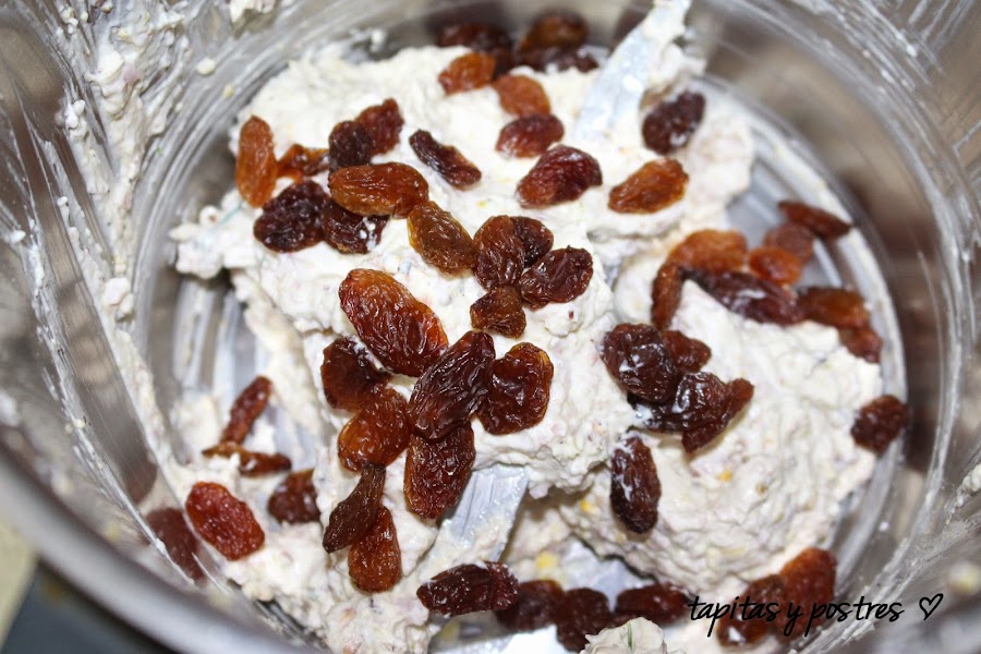 Ahora echamos las pasas y las trituramos un poco. No mucho.