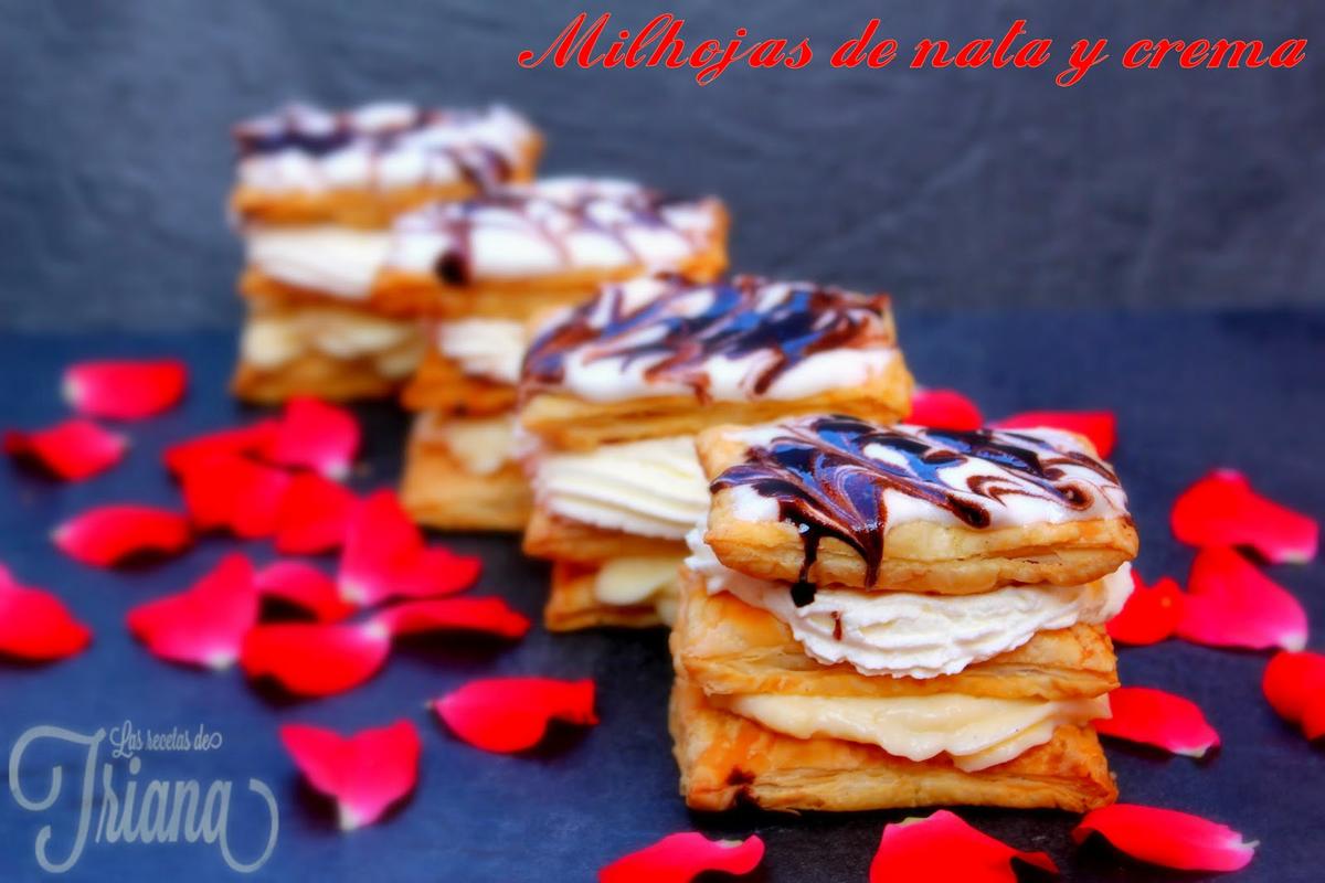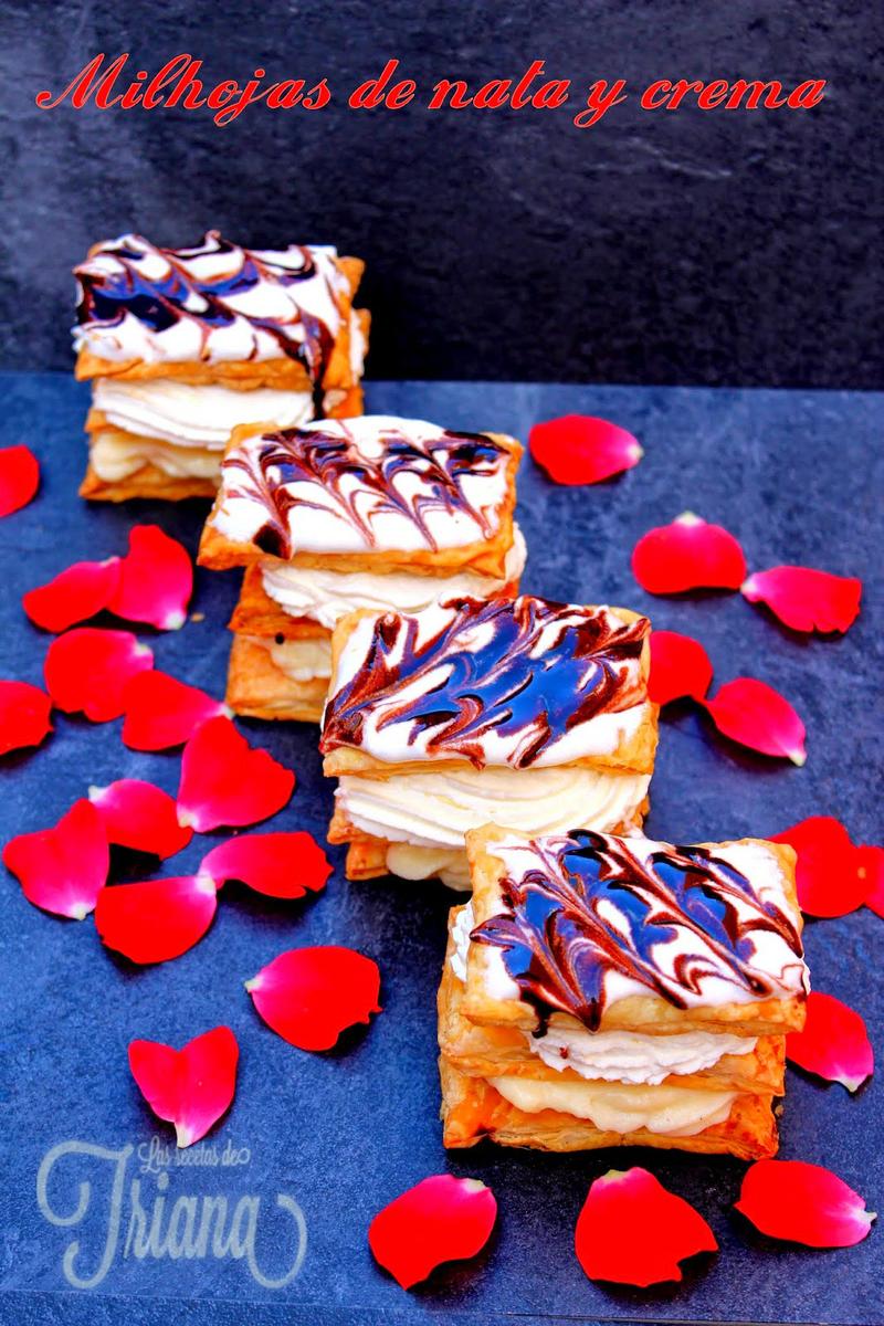 Finalizamos con otra capa final de hojaldre, decoramos espolvoreando un poco de azúcar glasé en la parte superior o como es nuestro caso con nata (crema de leche) mas liquida y sirope de chocolate...