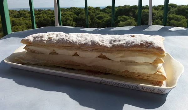 Hace tiempo que tenia ganas de hacer esta milhoja y como el merengue no me gusta, pues de nata (crema de leche) que le gusta a todo el mundo. Siempre me he preguntado sobre la historia de la milhoja y encontré esto en wikipedia.