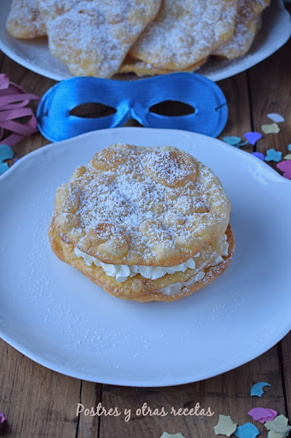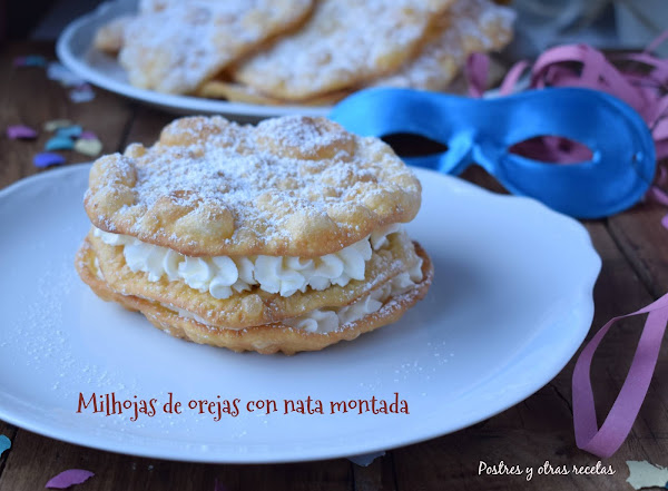 Uno de los dulces más típicos del Carnaval son las Orejas, pero ¿os imagináis hacerlas redondas y rellenarlas de nata montada (crema de leche)?. Imposible describiros lo buenísimas que están.