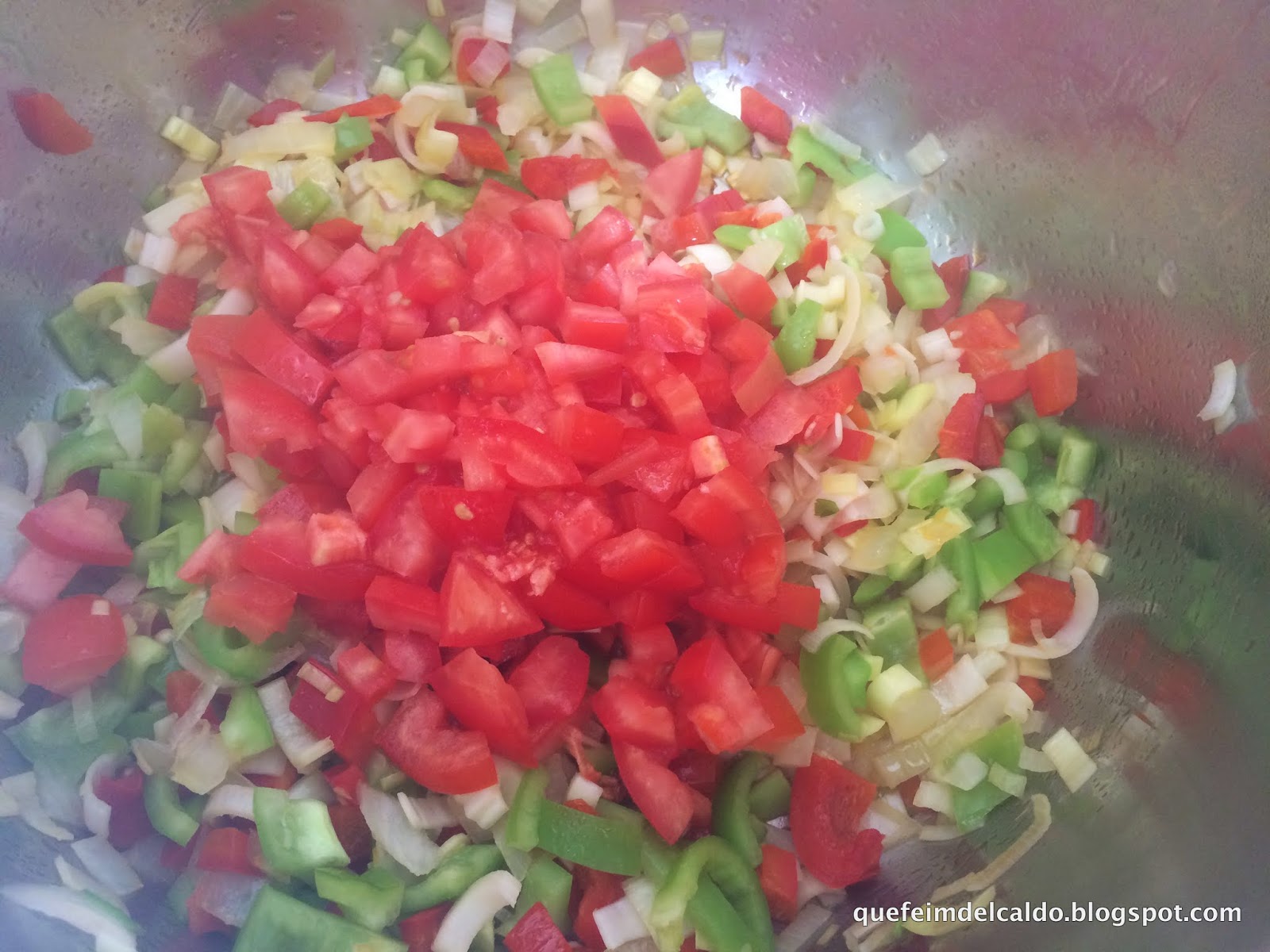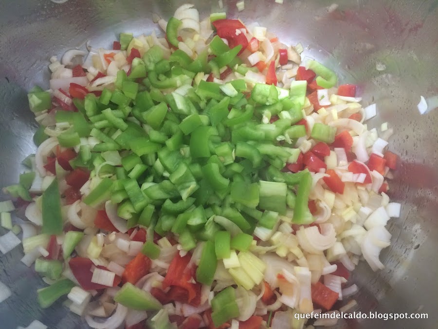 Cogemos el pimiento verde lo troceamos y para adentro.