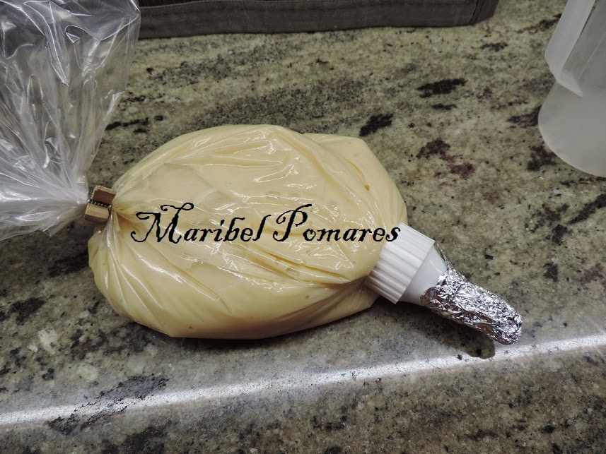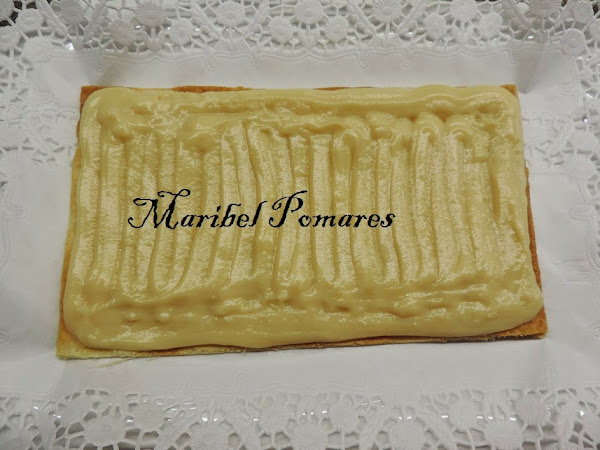 Ponemos la crema encima de la lamina con la ayuda de la manga pastelera, para que nos quede los más igualada posible.