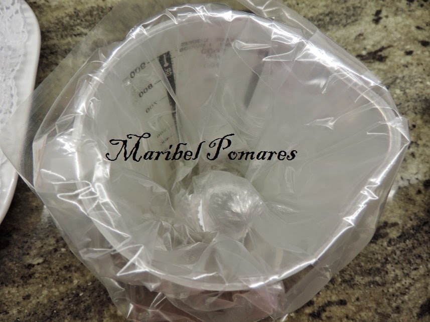 Una vez tengamos la crema pastelera, preparamos la manga y la ponemos en un vaso para poder rellenarla mejor.