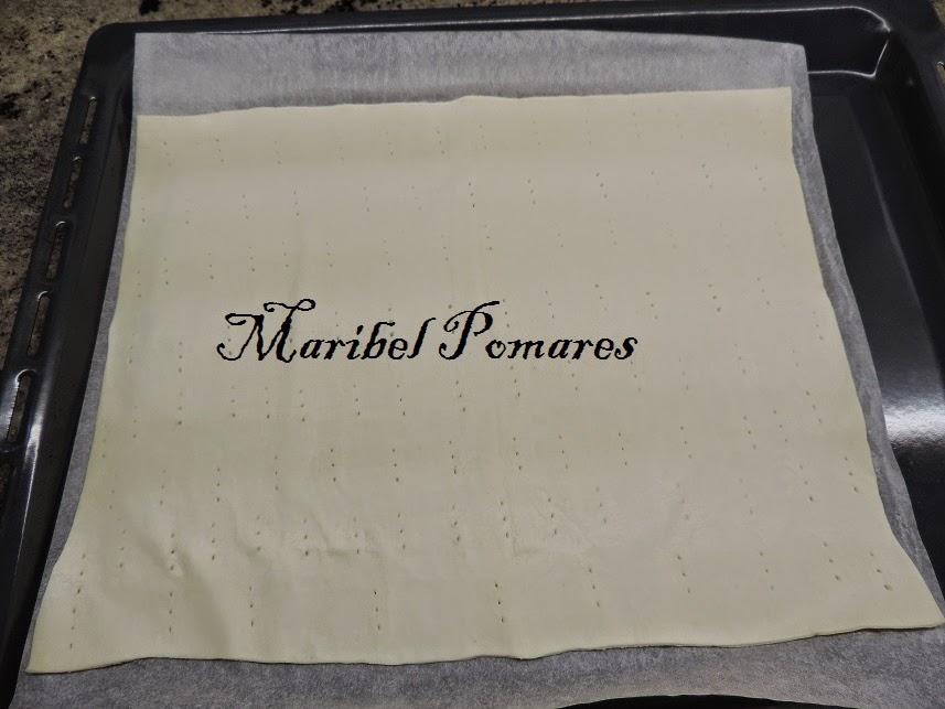 Lo ponemos por encima de la ultima lamina de hojaldre.