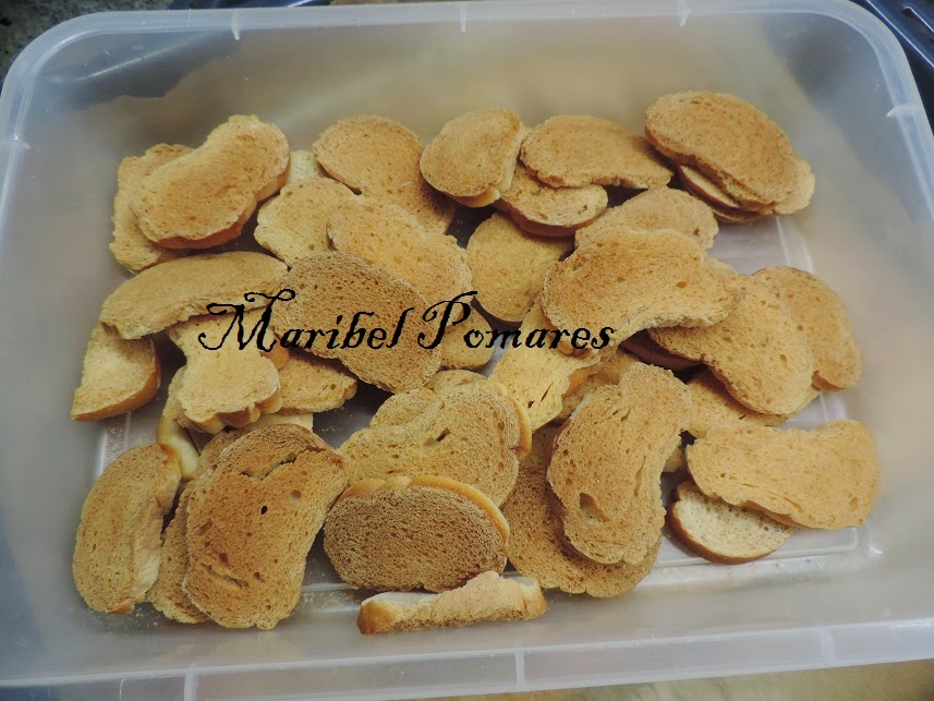 Y en la bandeja del horno de encima que está vacía he puesto unas tostadas de pan, hay que aprovechar cada vez que encendemos el horno.