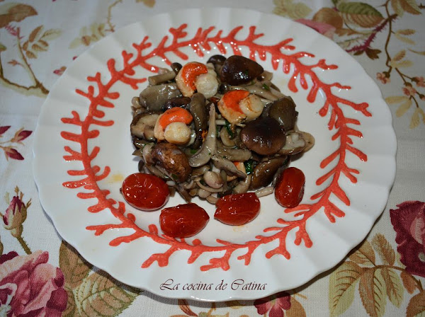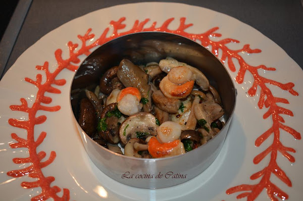 Formamos una especie de milhojas alternando las zamburiñas con las setas preparadas.
