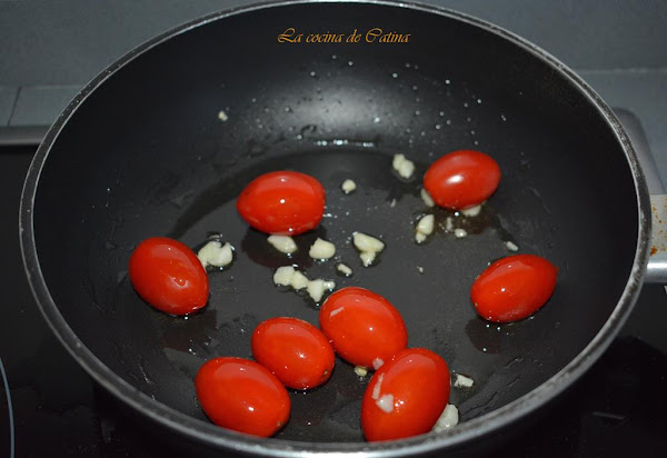 En el mismo aceite, freímos los tomates cereza enteros.