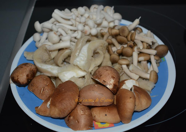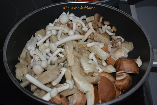 Ponemos una sartén a calentar con dos cucharadas de aceite de oliva y en ella salteamos las setas y los hongos, hasta que suelten toda el agua. Sazonamos con sal y pimienta al gusto y escurrimos.