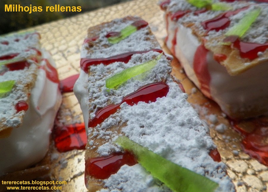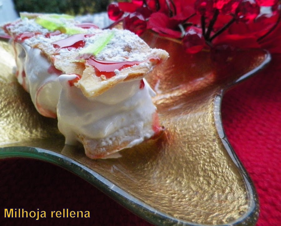 Hola a todos, por fin estoy de vuelta a mi querido blog. No había podido volver ya que he estado con familia todos estos días y ni un momento para compartir las recetas y visitar vuestros blogs, es más, tengo ésta de milhojas que se había quedado rezagada de tantos días de jaleo.. Por supuesto deciros, que os deseo un feliz año y todo lo mejor... Este postre que doy a continuación es fácil y rico, prometo que en los próximos días publicaré ensaladas y platos ligeros que ya apetece y mucho...
