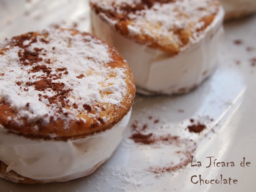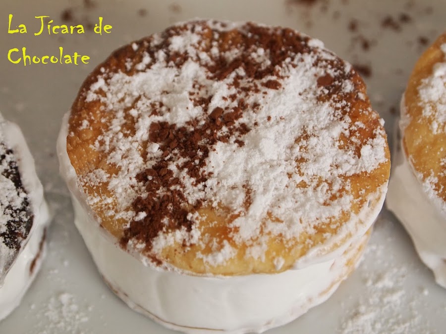 14. Montamos las milhojas como si fuera un sándwich, ponemos una base de hojaldre la rellenamos con merengue y lo tapamos con hojaldre.