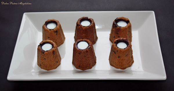 Debéis presionar bien la masa al rellenar, para que ligue y así no corráis el riesgo que se os rompan los vasitos al desmoldarlos.