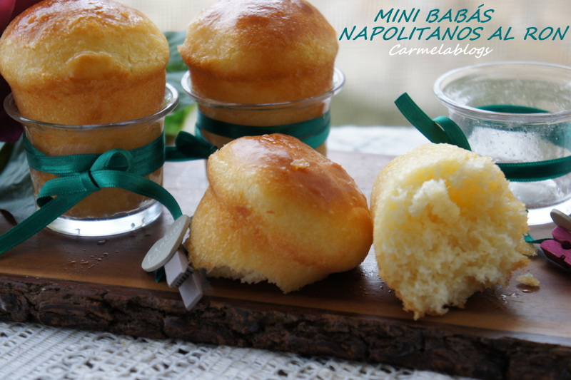 " El babà es un dulce elaborado en el horno, muy tradicional de Francia y también en la ciudad italiana de Nápoles. Tiene una forma de corona cuyo diámetro puede variar entre los 5-7 cm hasta los 35-40 cm o en forma de tapón de champagne que es la forma que he escogido yo, usando unos moldes estrechos y altos. Una de las principales características es que la masa (más ligera que la del bizcocho) está remojada en licor, generalmente ron o limoncello, de ahí que se denomine rum baba o baba al rum " ( Wikipedia, más información aquí ).