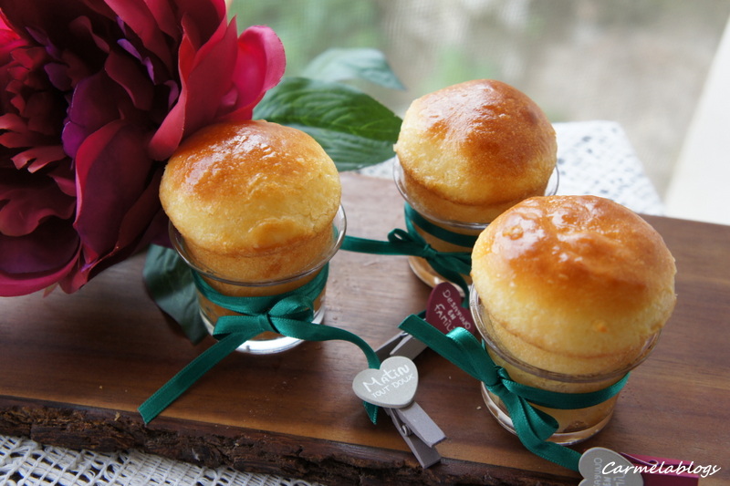 Poner los babás en vasitos decorados con cintas al gusto o cuerdas decorativas, servir sobre una tabla de madera rústica.