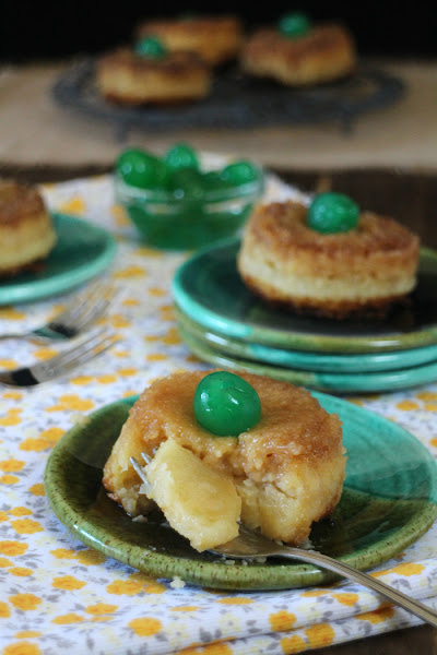 Unos mini bizcochitos muy jugosos y esponjosos, que casi parecen borrachos (aunque no lo sean) ya que el jugo de la piña hace que no necesiten ser almibarados porque ya cuentan con suficiente humedad.
