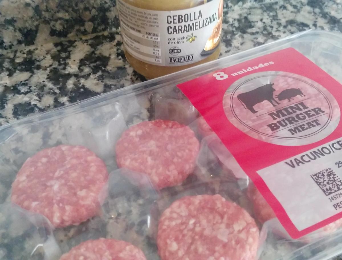 Mini hamburguesas // Las mini hamburguesas y la cebolla caramelizada los he comprado en el supermercado Mercadona.