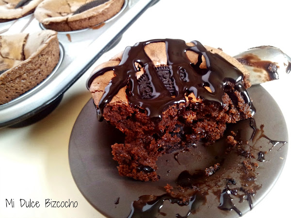 La única variación que yo le he hecho es que, como podéis ver en las fotos, en vez de hacerlo en un molde cuadrado, como tradicionalmente se hace el brownie, he decidido hacer mini brownies individuales, así que he usado el molde de los muffins y no ha quedado nada mal.