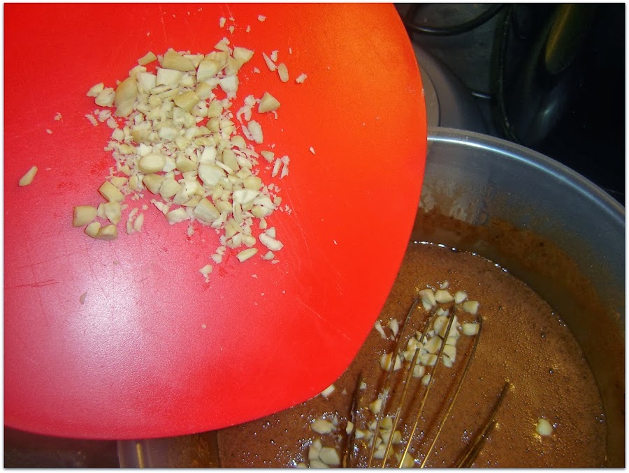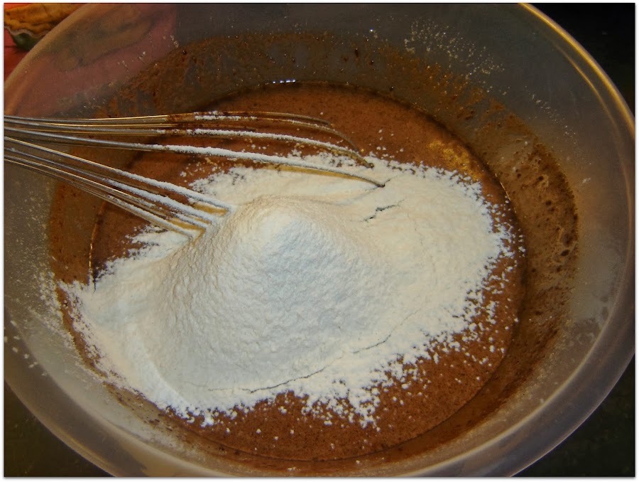 Por otro lado fundimos la mantequilla o margarina con el chocolate al baño maría o al microondas, según vuestra costumbre. Vertemos a la preparación anterior.
