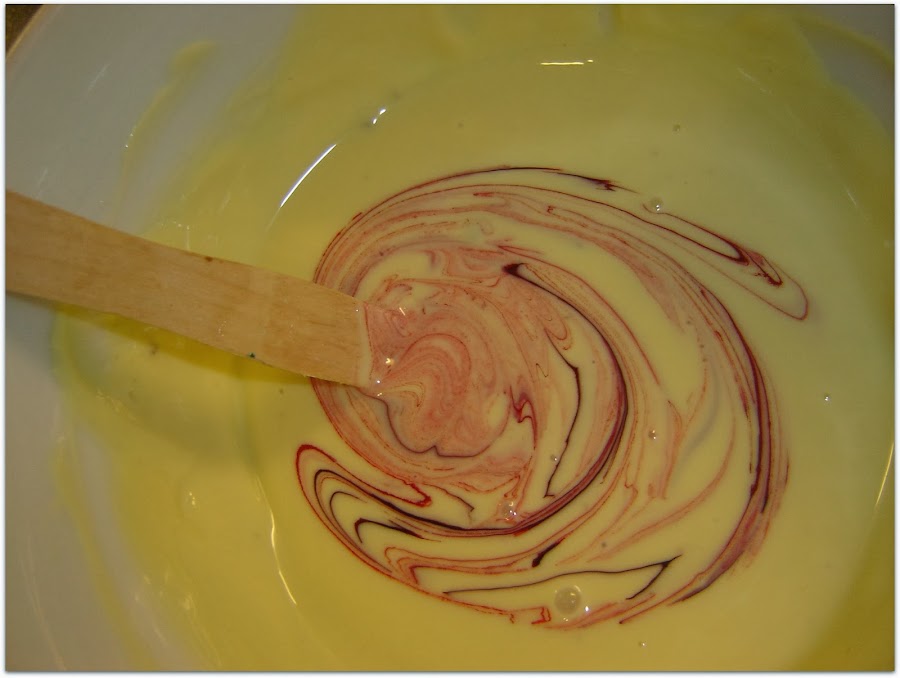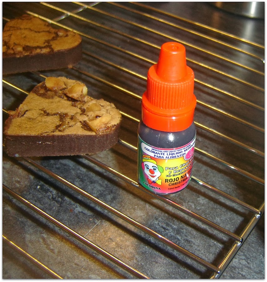 Fundimos el chocolate blanco al baño maría y le agregamos el colorante. En mi caso utilicé el colorante JG Rojo Navidad de Colorisa. Utilicé unas 4 gotitas.