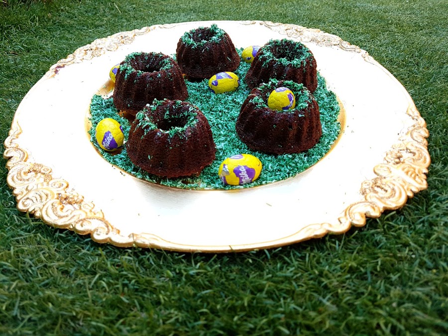 Verter la mezcla en el molde engrasado con mantequilla o spray y hornear (horno precalentado) a 170 grados unos 50 minutos (25 minutos en el caso de los mini Bundt)