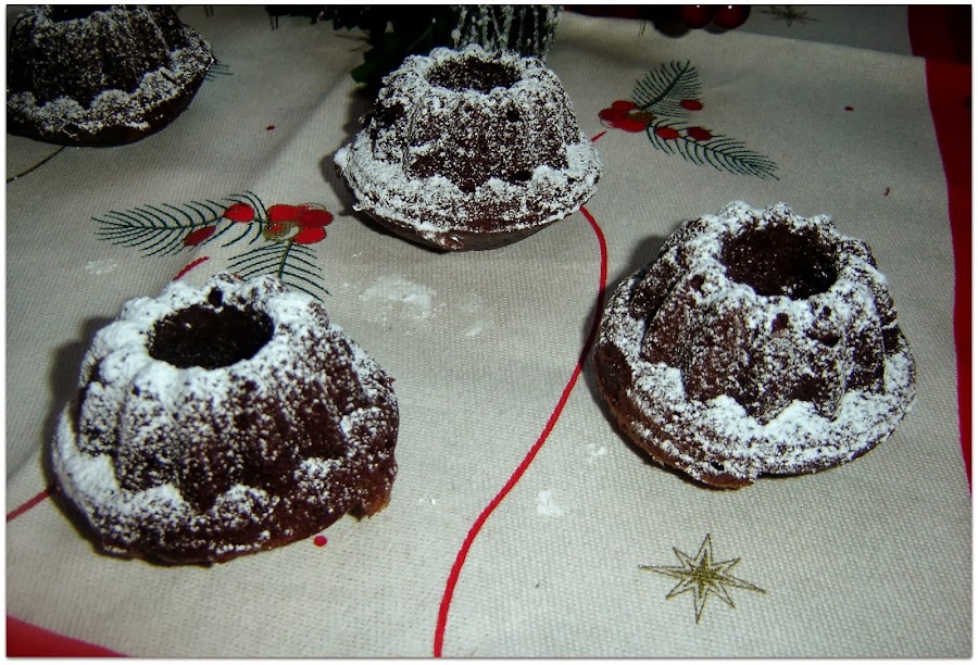 Con las prisas y el ajetreo no he podido publicar antes esta receta de pastelitos de jengibre. En la cultura anglosajona es muy común usar el jengibre en la repostería. Ya sabéis de las conocidas galletas con forma de hombrecito, costumbre que se está empezando a implantar poco a poco en nuestro país. En mi caso, he querido aportar a esta tendencia unos mini bundt cakes de jengibre y chocolate. Son unos pastelitos ligeros y sencillos que acompañarán vuestras mañanas y tardes. Que los disfrutéis!