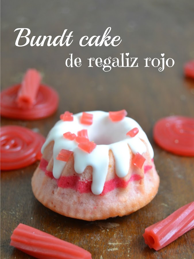 Al final me decidí por hacer estos mini bundt cakes de regalices rojas ¡No sabéis lo que me ha costado adaptar una receta! Al final he cogido cada cosa de un sitio y por arte de magia salieron preciosos ¡Menos mal!