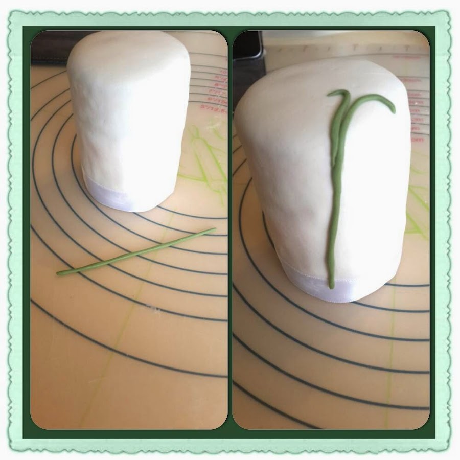 Con fondant verde haremos un churrito bien finito, cuidado no se os rompa!