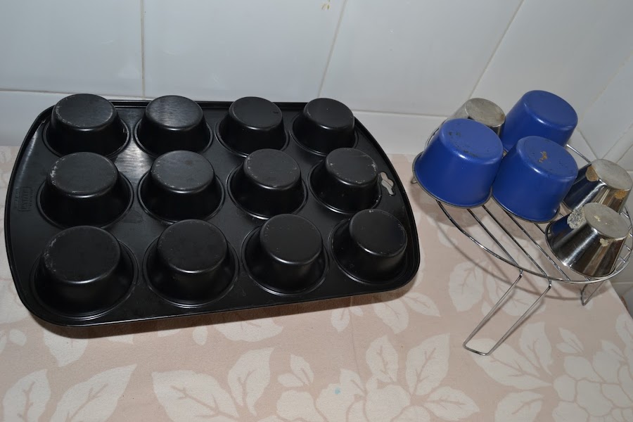 Ahora lo que vamos a hacer es rellenar unos moldes, los que mas les gusten. Yo use la bandeja para cupcakes y unos moldes individuales que tenia, pero se puede hacer en lo que tengan.