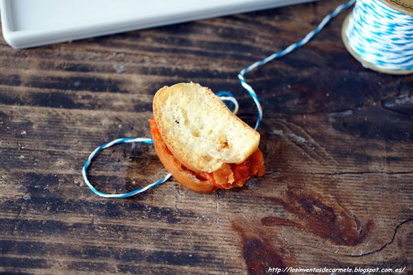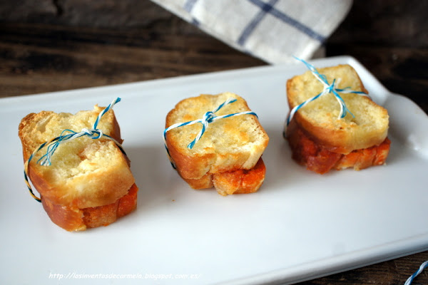 3) Llevar al horno a 200º hasta que se dore el pan. Dejar entibiar un poco.