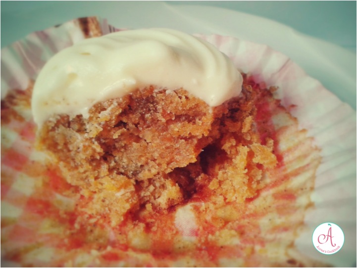 La receta la encontraréis aquí. He optado por hacerlos en formato mini y el frosting lo he dividido por la mitad ya que así quedan más ligeros y hay equilibrio de sabores.