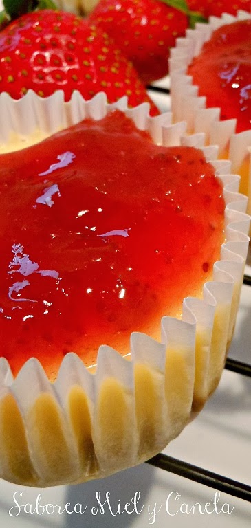 7.- Añadimos una cucharada de mermelada sobre cada tarta de queso y guardamos en el frigo, mínimo 6 horas.