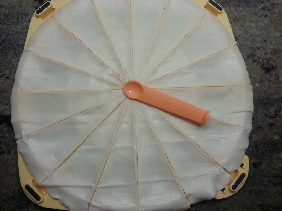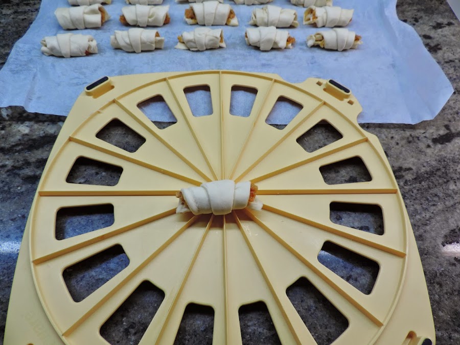 Con la cucharilla que lleva vamos repasando para marcar los croisanes.
