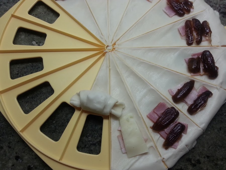 Con la cucharilla que lleva vamos repasando para marcar los croisanes.