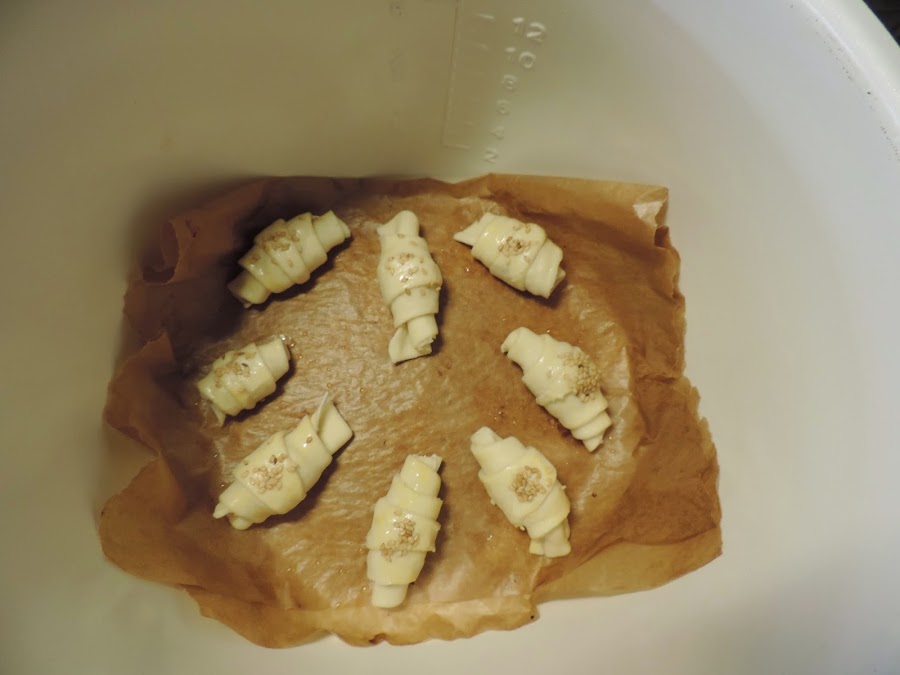 Ahora he puesto encima el croissant party por la parte más pequeña, presiono un poco.