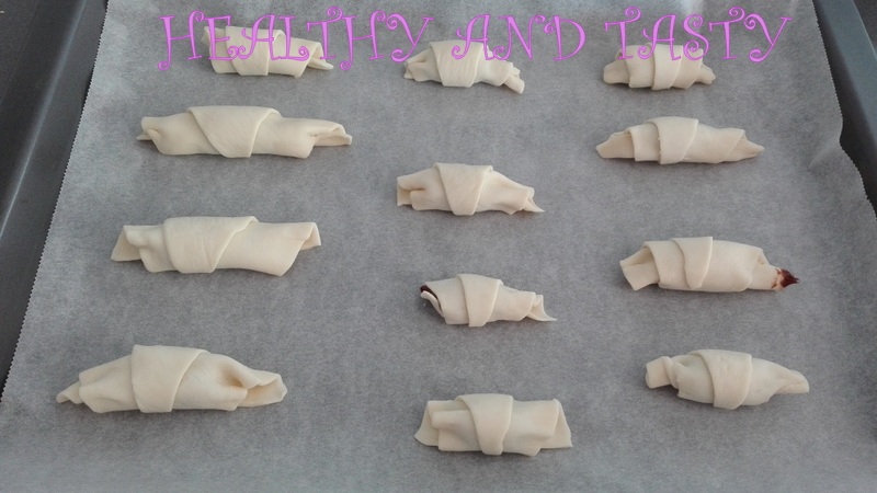 Enrollamos cada croissant desde fuera hacia dentro, quedando la puntita arriba.