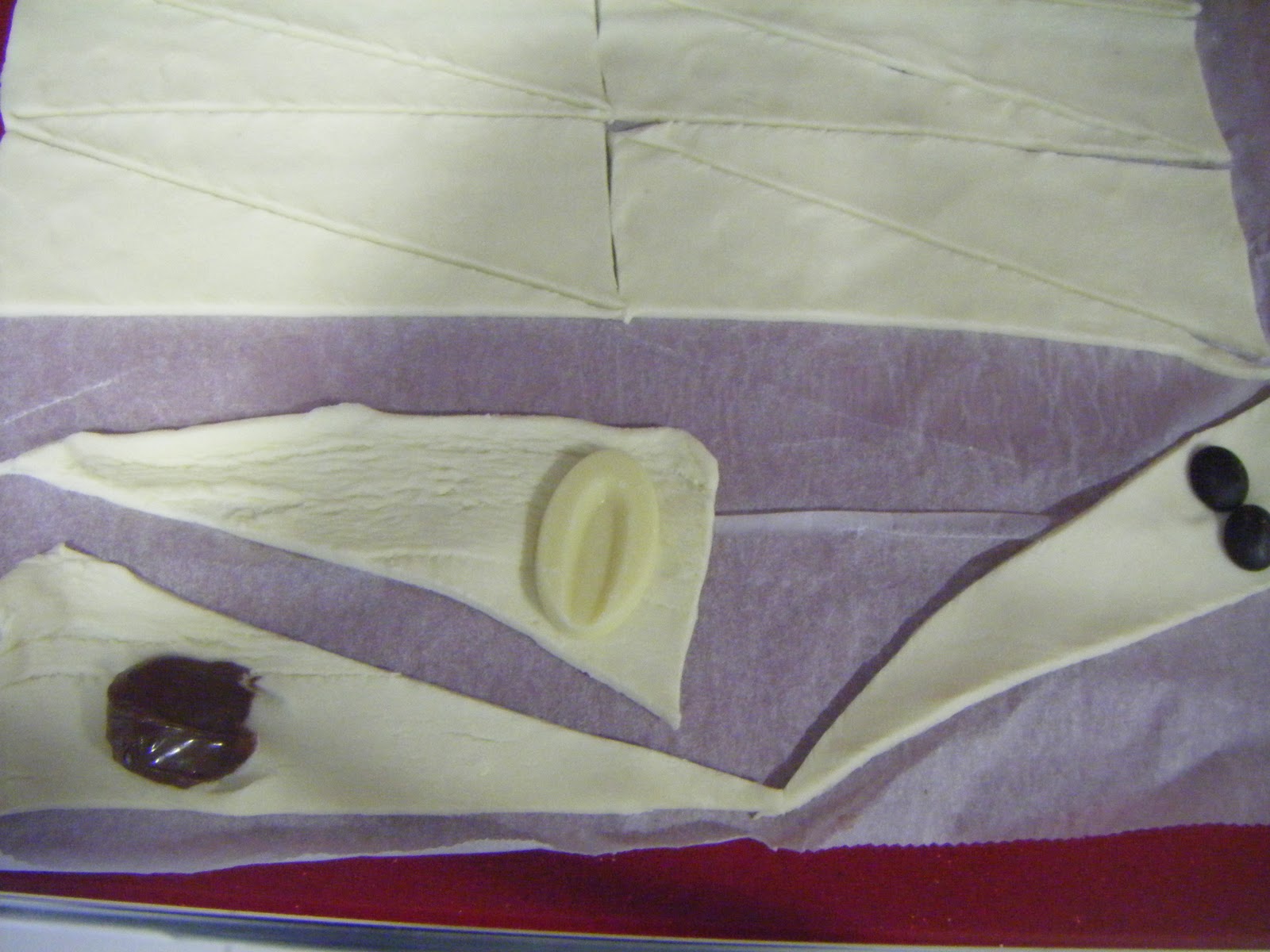 Buenas noches, aquí os dejo una receta super sencilla, mini cruasanes rellenos de chocolate unos de chocolate negro, otros de nocilla y otros de blanco. Aproveche coberturas negra y blanca que me sobraron en navidades.