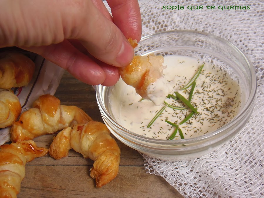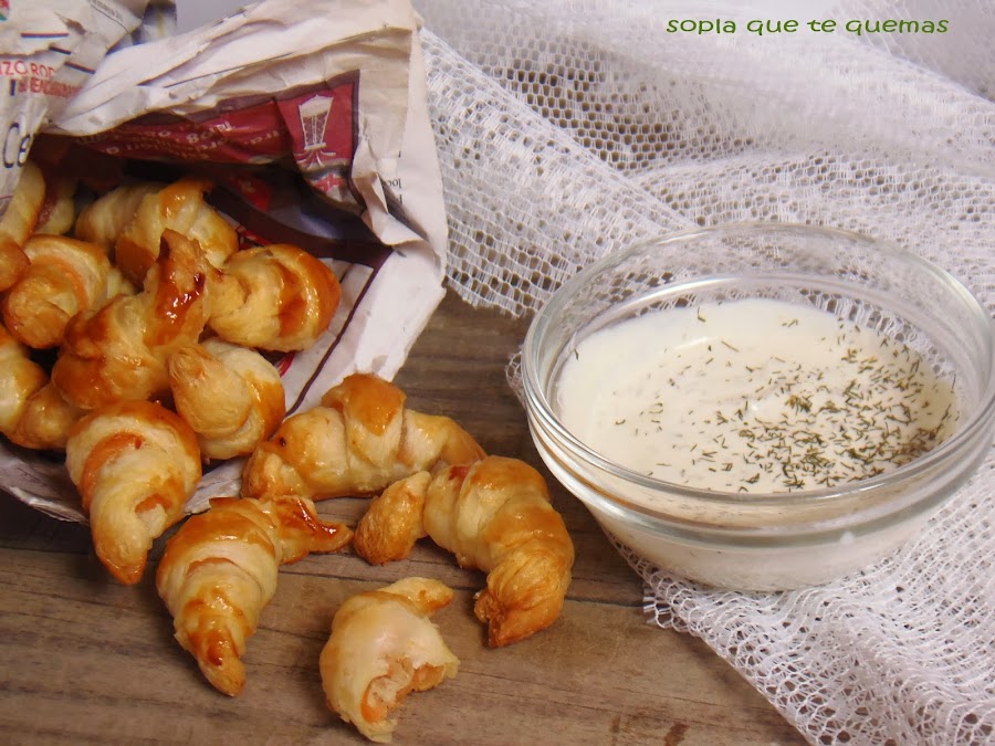 He acompañado los cruasanes con una salsa de yogur, mostaza y eneldo que les va a la perfección, aunque si queréis podéis prescindir de ella.