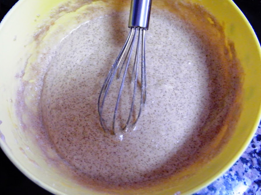 No os alarméis, parece que quede súper líquido, pero id mezclando en círculos con suavidad y veréis que se incorpora sin problemas hasta convertirse en una masa de textura suave.