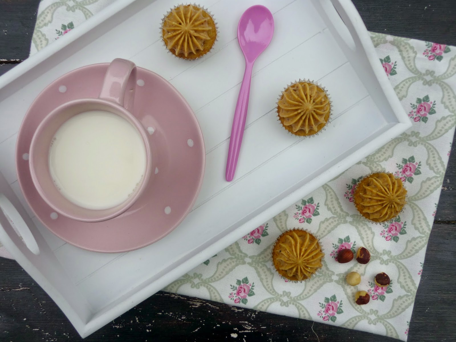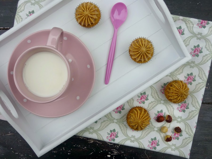 Hace ya varios meses que hice estos mini cupcakes, pero por unas cosas u otras no les llegaba su turno. Si os digo que casi acabamos con ellos el mismo día que los hice os lo digo todo. Juan se quedó con ganas de más, le encantaron. El bizcocho tiene un toque acaramelado y la crema con delicioso sabor a avellanas no es nada empalagosa.