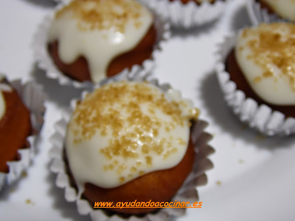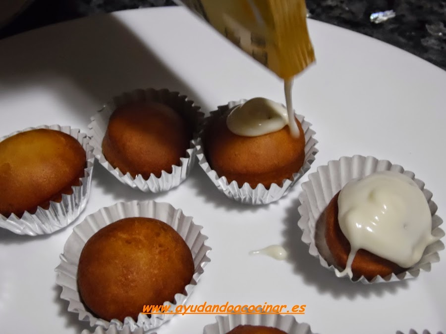 No obstante podemos utilizar el glaseado que hemos elaborado para los roscos, pero dejando una textura mas compacta, también se puede utilizar cobertura de chocolate fundida tanto blanco como negro para lo que os dejo enlace de como fundir chocolate