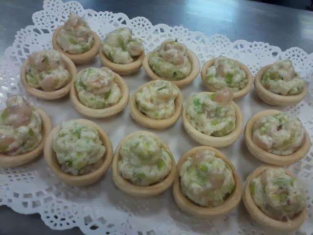 Ponemos en una sartén una cucharada de mantequilla y freímos las gambas, añadimos una cucharada de harina y removemos.
