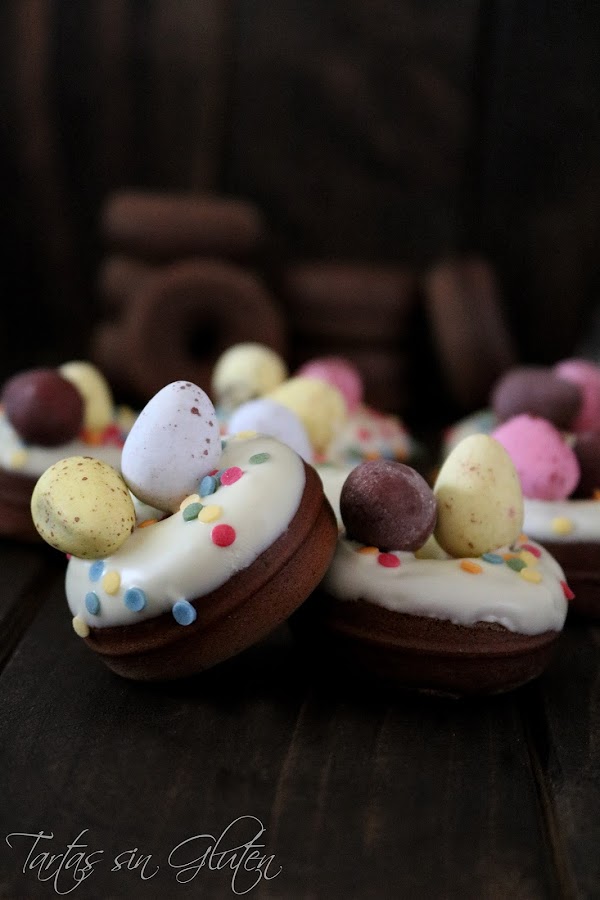 Hoy Domingo de Pascua !!! Preparar una merienda de Pascua es muy sencillo, basta con preparar un dulce, como un bizcocho, unas magdalenas, unas galletas y decorarlas con algún color pastel y unos huevos de chocolate. Hoy para celebrar este domingo hemos preparados uno mini donuts de chocolate y para darle ese ambiente, simplemente los hemos decorados con chocolate blanco, unos sprinkles de colores y los huevitos de chocolate con leche "pecosos" de LaCasa, que además de estar super...mega...ricos!!! son ideales para decorar todo tipos de dulces.