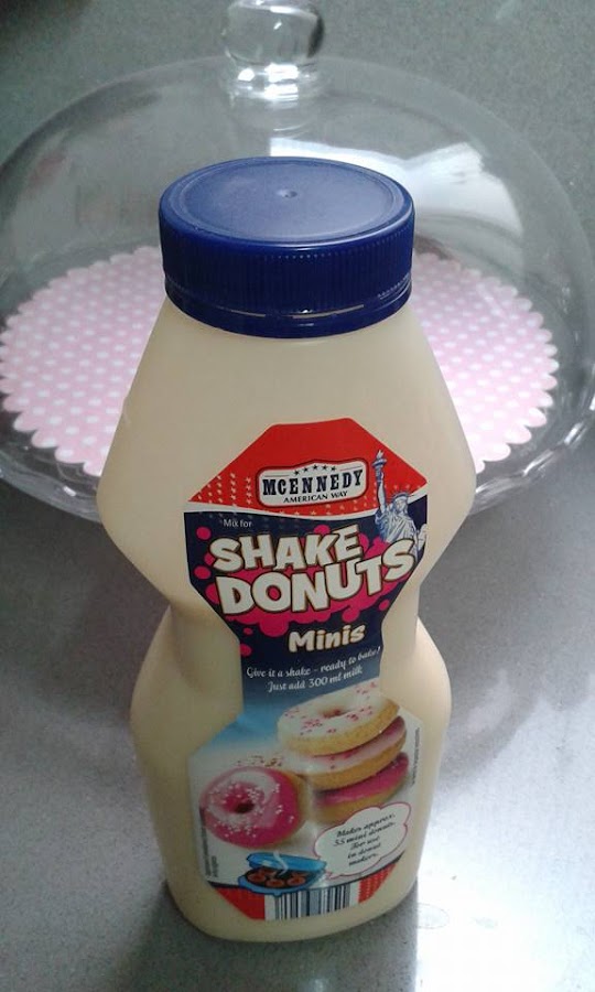Hace poco compre en el lidl un preparado para hacer donuts, me costo 30 céntimos pero normalmente vale 80 céntimos y salen unos 30 donuts y pensé bueno por probar no pierdo nada. El preparado no lleva sabor así que echaremos el sabor que queramos, yo opte por hacerlo con sabor a plátano. También deciros que me gusta mas el preparado que hago yo que el del lidl, pero para algo rápido esta bien.