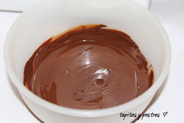 Derretimos el chocolate con un poquito de aceite en el micro, un minuto más o menos.