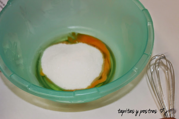 Batimos los huevos con el azúcar hasta que estén cremosos.
