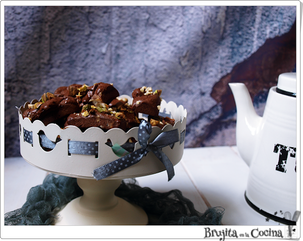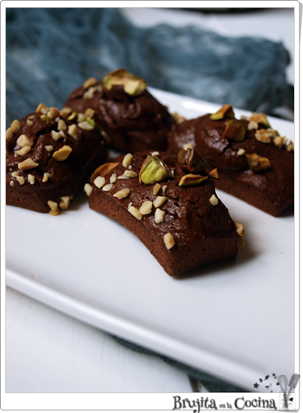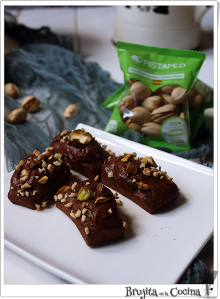 Bueno a lo que voy, que para un par de claras que tenía hoy las he usado para estos financiers, que son bizcochos con almendra, en este caso con chocolate y pistachos,porque creo que van muy bien juntos. Además les he hecho pequeños, casi casi de bocado y para acompañar al café o la infusión que más os guste van genial.
