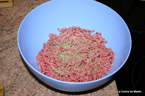 Empezamos especiando la carne con la sal, la pimienta y el orégano