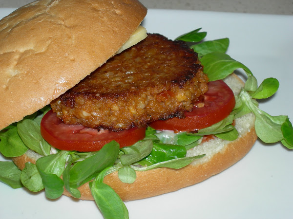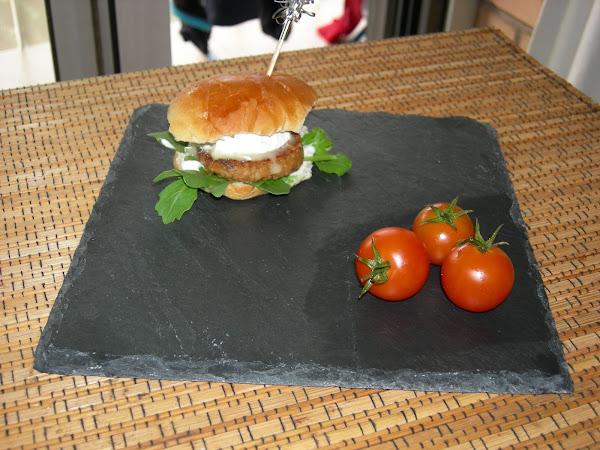 cortar unas rodajas y hacer a la plancha poner en el bollo una cucharada de mahonesa, rucula, una rodaja de queso de cabra en rulo y nuestra hamburguesa, tapar y degustar !!!