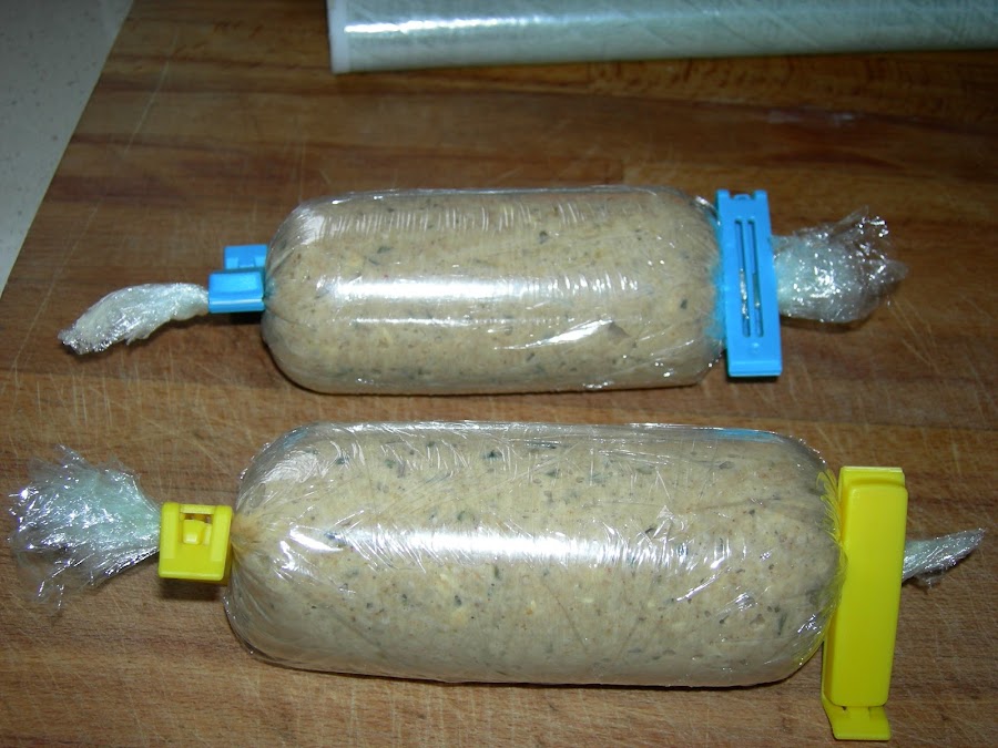 Una vez tengamos la masa preparada la liaremos en papel fil bien prensada y enrollada anudaremos los extremos ( yo reconozco que soy incapaz y uso las pinzas de cerrar las bolsas) pondremos al vapor por 40 minutos 20 por cada lado. Una vez hechos hay que dejar que se enfríen bien antes de quitar el plástico
