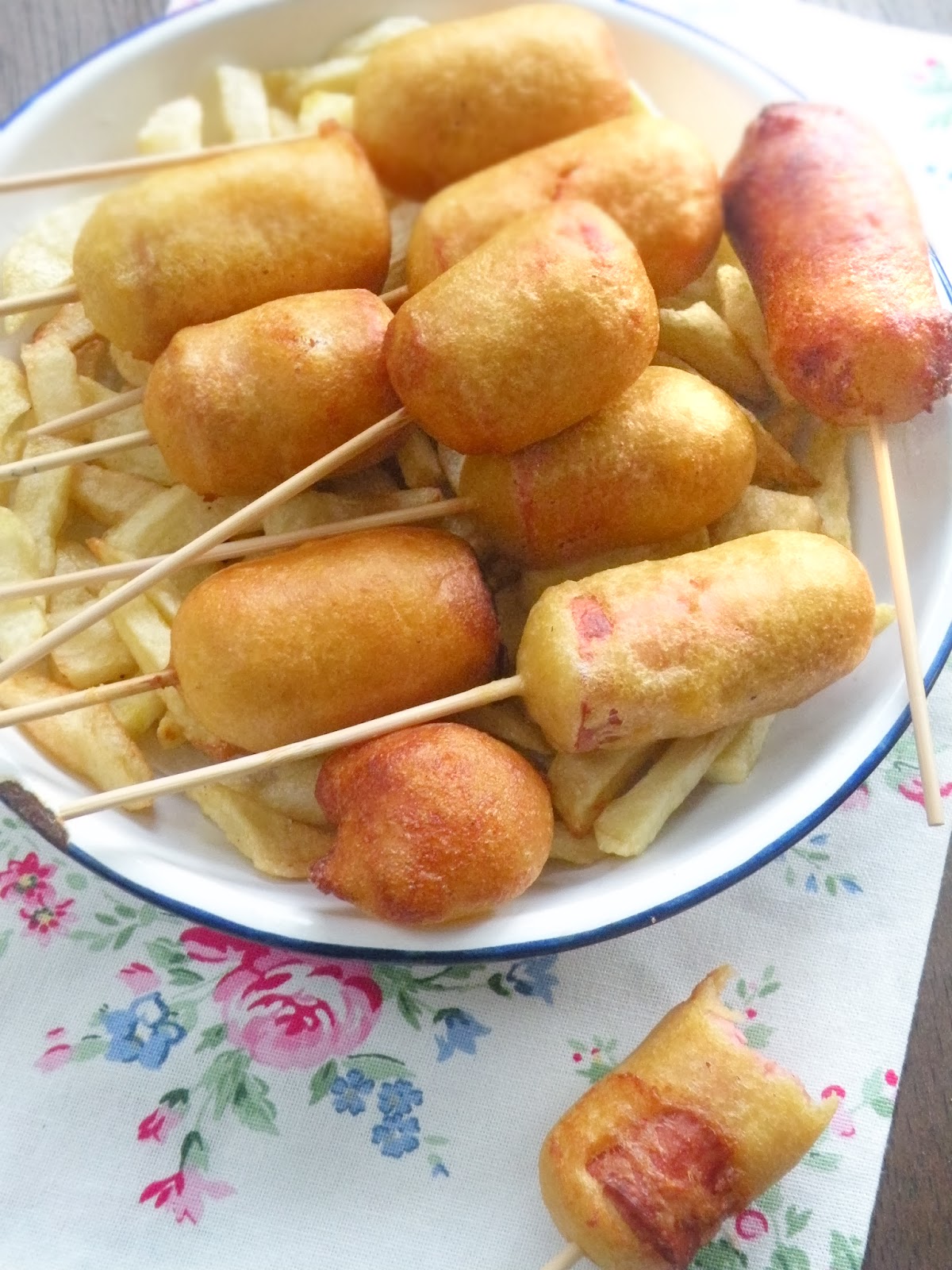 Es una forma diferente de comer perritos calientes y el rebozado tiene un toque a dulce ¡delicioso!